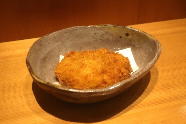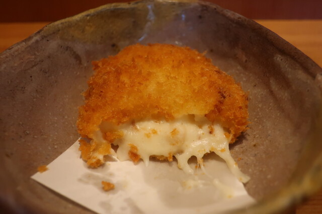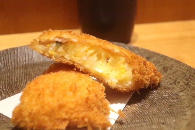 青唐辛子ポテトサラダを、鎌倉ロースハムで挟んでコロッケのように揚げたものです。