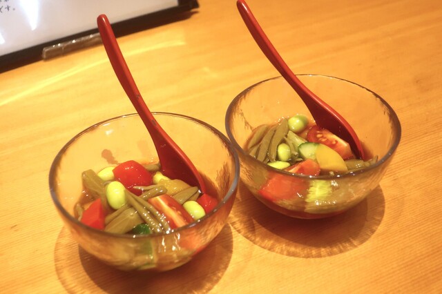 冷たい方が里芋に味が乗るので冷製にしたそうです。確かに。