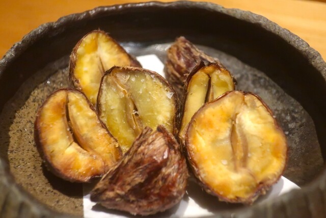 綺麗に鬼皮を取り除き、素揚げをしたことで渋皮もパリッと食べられる状態に。