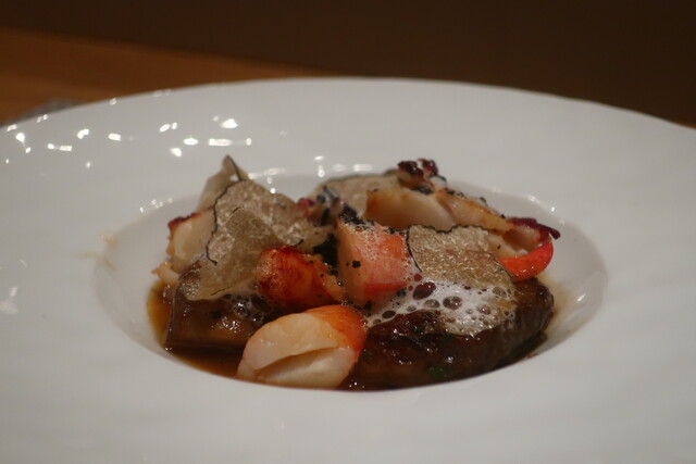 相変わらず絶妙な火入れのオマールブルーの甘みの素晴らしさ。下仁田ネギがいい仕事をしていて。
