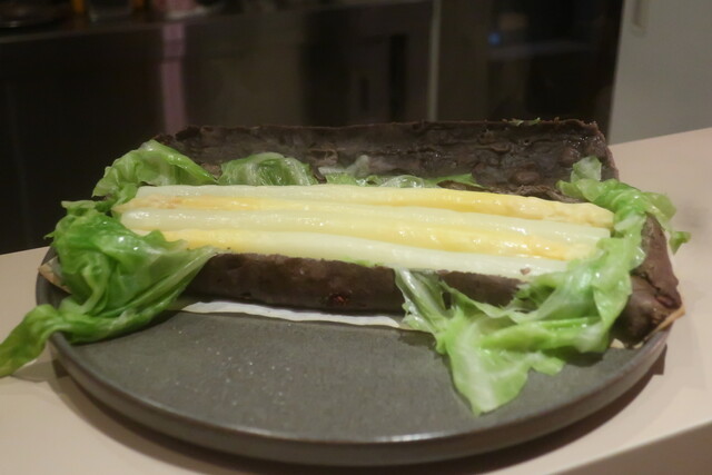 パリパリの生地がこれらの全ての食材を纏め上げています。