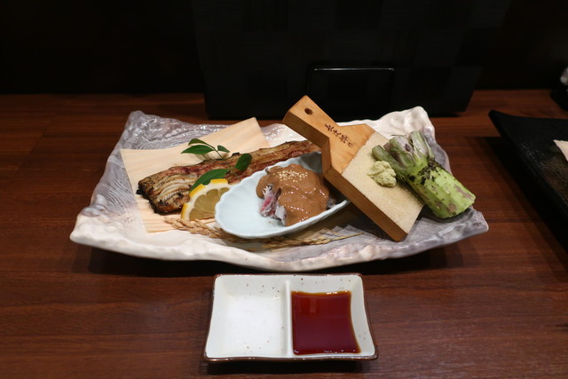 鰻の白焼きは表面がカリッと仕上がっていて、炭火の威力を感じますねえ。