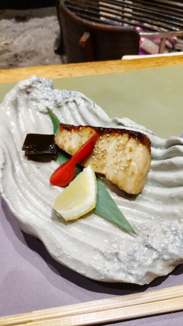 目の前の囲炉裏の炭火で自分で焼くスタイル
