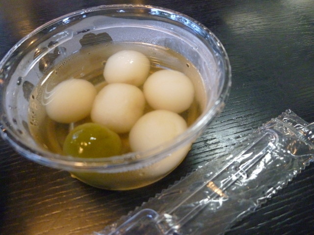 ちなみに、店員さんが運んできてくれたときには、「白玉は固くなる前にお早めに」とのことでしたので、ちょっとあせって白玉を食べてしまいましたが。。。
