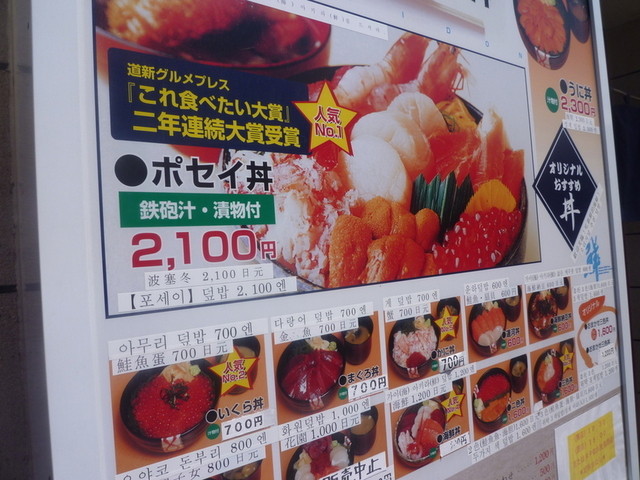そんなこんなで、目的は「ポセイ丼」! これ食べにきたようなものです! ウニ、イクラ、サーモン、ホタテ。。。幸せですね!