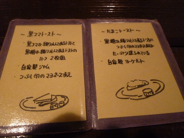 「カフェ・ド・SaRa」さんには開店直前に到着しました。 既に1人お客様が待ってました。 8時45分でしたが、9時にはお店の半分はお客様が入る人気ぶり。 一番奥の席に座って、モーニングを注文。 モーニングは黒ゴマトーストとたまごトーストの2つから選べるとのことでしたが、黒ゴマトーストをオススメされましたので、そちらを選択。