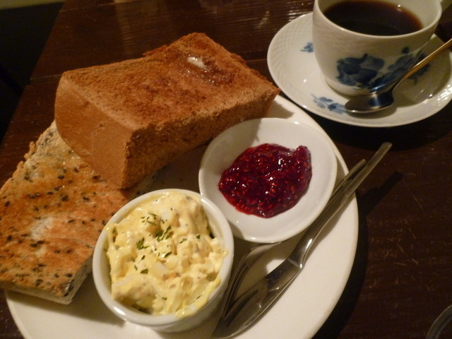 さらに「自家製ジャム」と「つぶし玉子のマヨネーズあえ」が付いてきます。 これをパンに乗せて食べてもまた美味しい♪ ジャムは、果肉がたっぷりと入っていて甘さも抑えられていてスッキリとした朝の味わい。 これを自家製で作ってるなんてすごいなと。 「つぶし玉子のマヨネーズあえ」は、朝イチのタマゴサンドとしては最高でした。 黒ゴマトーストに乗せて食べると、黒ゴマの風味と卵とマヨネーズの優しい食感がマッチして最高でした。