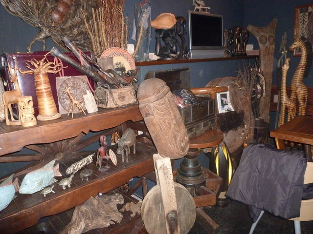 お伺いすると店内の装飾が少し変わってました。 どうやら昔の馬車の車輪を 2/3ほど切り取って作られたという飾り台があり、様々なアフリカ装飾が飾られていました。 マスターに聞くと、どうやらオープン当初は置いてあったのですが、邪魔なので一旦倉庫に眠らせていたものをまた持ってきたようです。