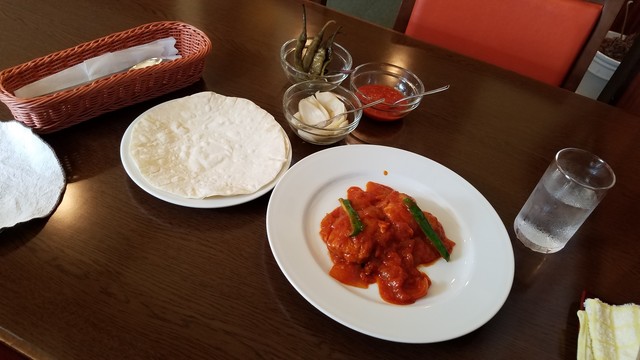 ぷっくらと膨らんだピタパンも付いてくるので、普通にナンのようにして食べるのもよし、いろいろ詰め込んでピタサンドにしてもよし。 さっぱりと薄味で中にレタスを入れてくれているので、ピタサンドにして頂きました。