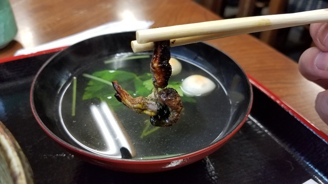 また、以前までは「野鳥コース」では、「すずめ」と「うずら」の両方が食べれていたようなのですが、ボクが行った時には、最近は「すずめ」の入荷ができないので、「うずらが2本」か、「うずらと若鳥」で選んでもらうとのことでした。 嫁が「若鳥コース (3350円)」のほうを頼むということだったので、ボクは「野鳥コース (3350円)」で「うずらを2本」にして注文です。