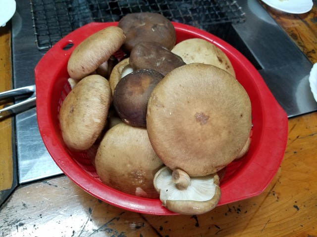 野原川しいたけ食べ放題! ひゃ~っ♪ 肉厚でプリッとした旨み抜群の椎茸、もりもりと大量に食べて最高な気分!