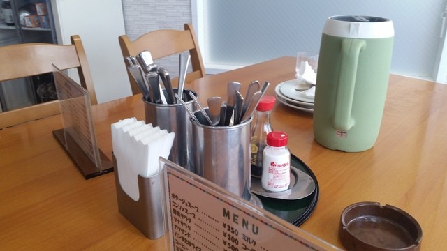 お店の広さは、前とそれほど変わってないですね。 カウンター4席、テーブルが2~3名掛け2卓、6名掛け1卓、7名掛け1卓で、混んでいると相席になります。 前々から思っていたのですが、開店の11時半過ぎにはあっという間に混み始めて、12時半くらいにちょうど空いてくる感じで、コアなファンがが多いお店なんだろうな~っと思います。