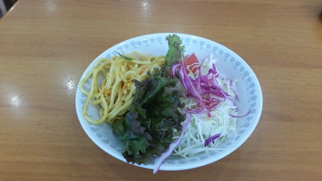 そしてサラダには、これも前から変わらず、カレー味のパスタが乗ってきます。
