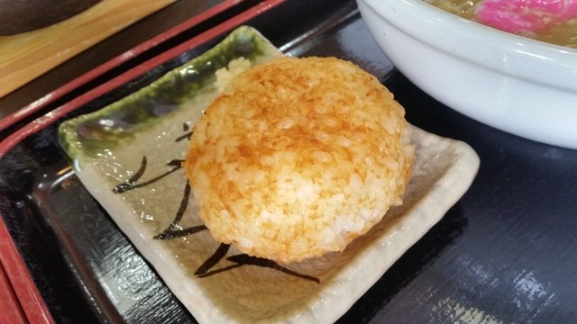 ころっと丸々の見た目は普通の焼きおにぎり、香ばしい香りがして熱々です。