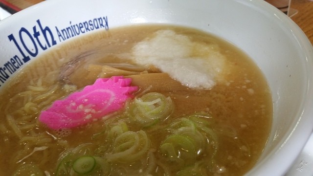 トッピングは、チャーシュー、ナルト、メンマ、ネギに加えて「とろろ」も乗ってます。