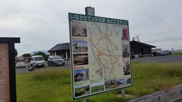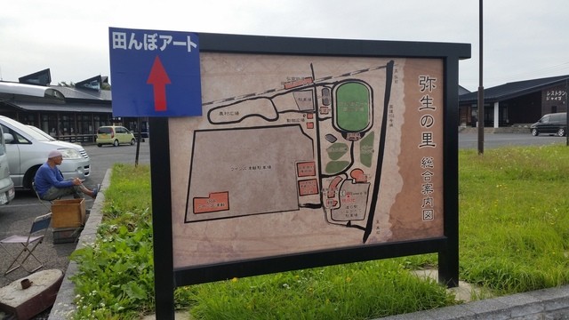 よくよく調べてみると、「道の駅 いなかだて」にあるのは第2田んぼアートになるのですが、道の駅の売店などの施設があるところから弥生の里の敷地内を3分ほど歩いて、展望台から見るようです。 なるほど、ここにきてもすぐには見れないわけですね。 さらに、第1田んぼアートは、ここから車で3kmほど走ったところにある田舎館村役場の役場天守閣から見れるようです。