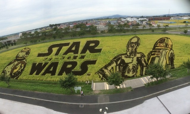 パノラマ撮影で、第2田んぼアート「スター・ウォーズ フォースの覚醒」