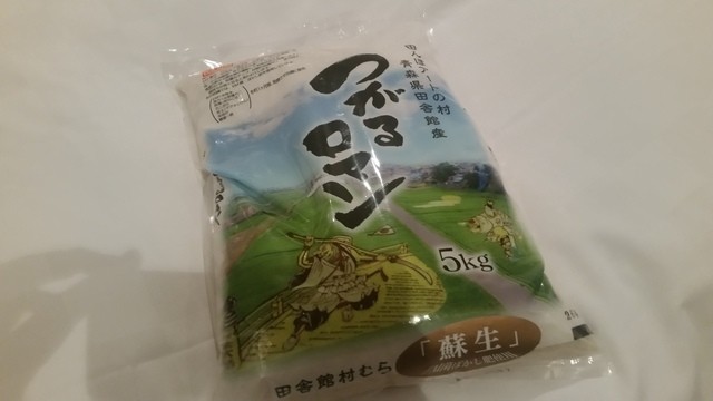 「田んぼアート」は、いろいろな品種の稲を使って、田んぼに絵を描くというもの。 そうなると、当然ここでは米を買うべきだろうということで買ったのが「つがるロマン 5kg (1400円)」♪