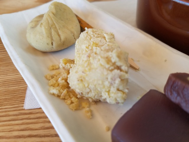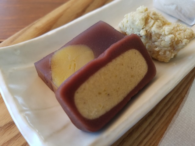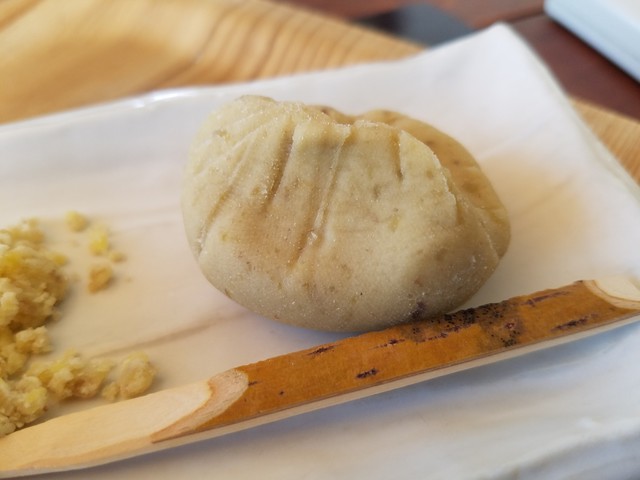 ふよっとした餅の食感に、しっかりとまぶされた栗粉、まさに秋の味覚を満喫できる一品でした。
