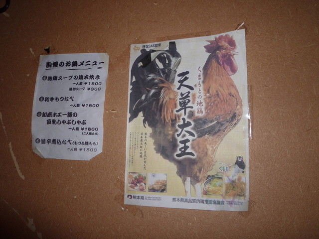 いろいろと食材にこだわりがあるそうで、お店の店長さんらしき方の話を聞いたところ、自分で生産地に足を運んで良いものを契約してくるのだそうです。 こちらでは天草大王という地鶏が売りのようで、