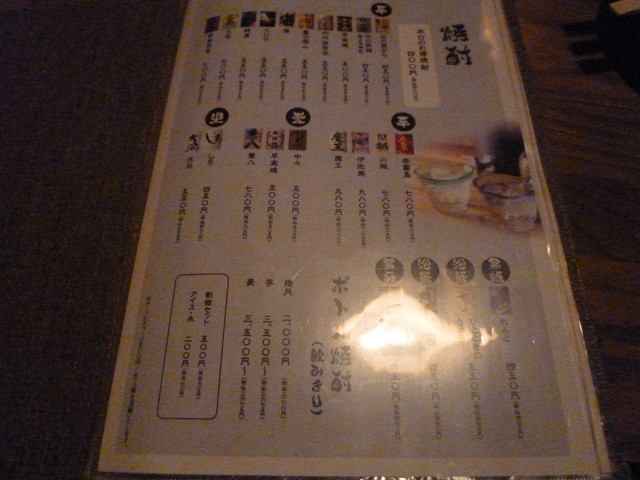 焼酎メニュー