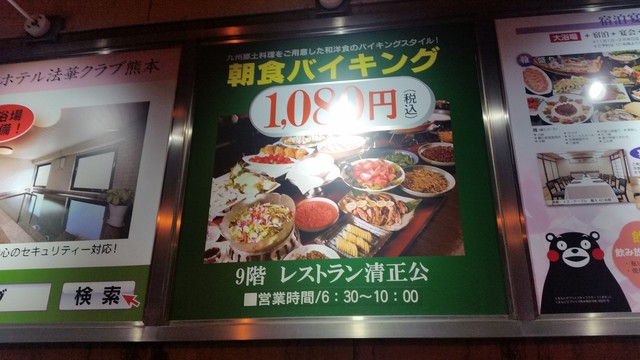 お食事処は、9階の「清正公」さんで、朝食バイキングは1080円♪