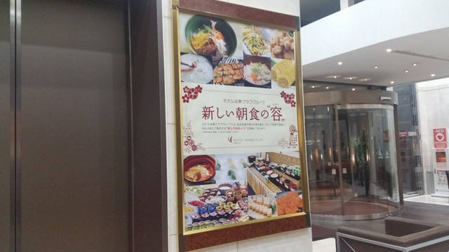 ホテル内にあった朝食バイキングの案内
