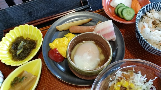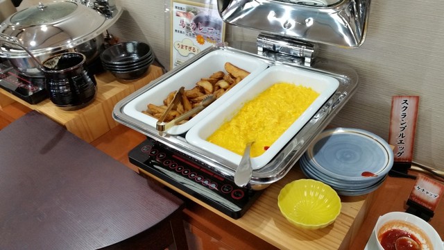 あと、どうしても和食が食べられない外国人のお客さん向けなのか、スクランブルエッグ・ポテトフライ・ベーコン・ソーセージなども用意されていました。