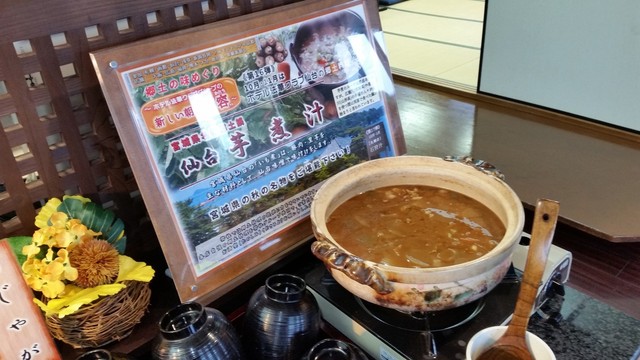 ホテルのグループで、持ち回りで全てのホテルで各地の郷土料理を一品を出しているようです。 12月・1月は札幌店が主催されて石狩鍋が予定されているそうです。 10月・11月の郷土の味めぐりは「仙台の芋煮汁」でした。