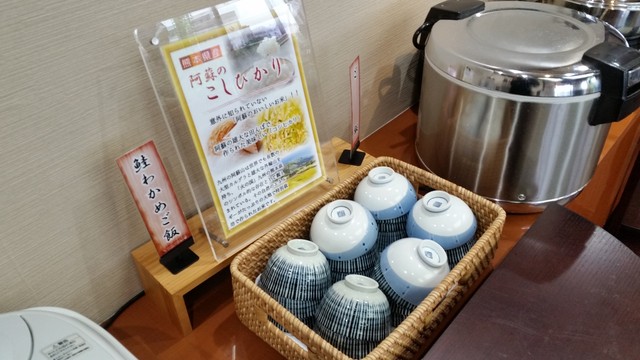 ご飯は、普通のご飯の他に、「鮭わかめご飯」がありました。 阿蘇のこしひかりを使っているらしいですね。