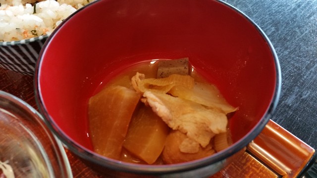濃い目の味噌を使っていて、里芋が入っているせいか、普通の豚汁よりもとろみが強かった気がします。