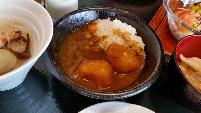 クセは全くないのですが、どことなく馬肉の甘みも感じられて、なかなか濃い目の仕上がりのルーでした。 それを和風の出汁でまろやかに仕上げているようで、比較的甘口です。 朝食バイキングなので、甘口なのはしょうがないかな~っとは思いましたが、ボク的には少々辛いほうが好みではありました。