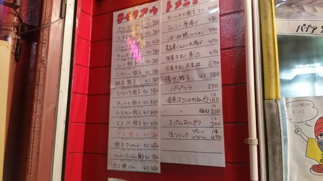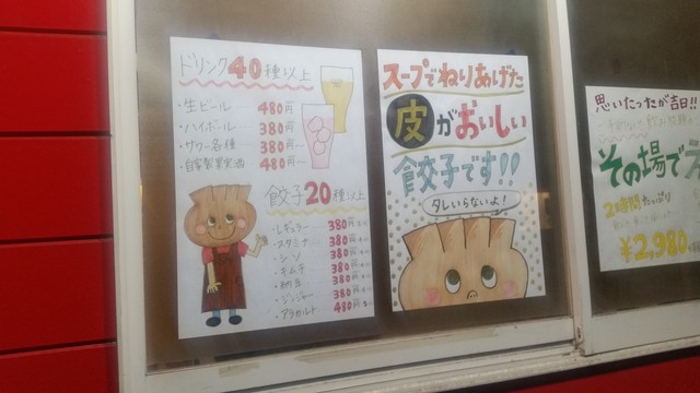 ここはまた行きたいお店です、今度他にも「スタミナ餃子」「トムヤムクンスープ餃子」「スープ餃子」「生ハムチーズ餃子」「にんにく餃子」「チートマ餃子」なんか挑戦してみたいメニューがたくさん。 その他にも一品メニューも豊富で、「パプフラ」「国産牛スジ煮込み」「スパムおにぎり」とかもいただいてみたいです。