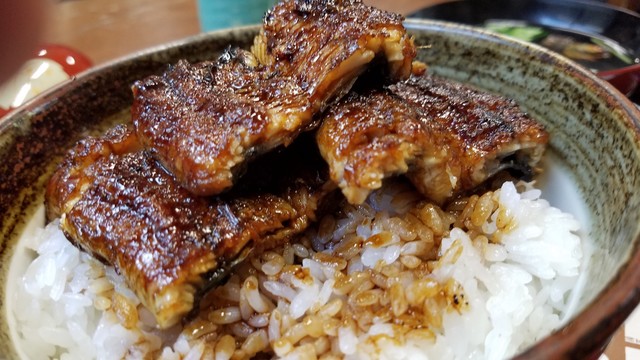 うわ~、これは美味しそう♪ かなり濃厚なタレでしっかりと焼かれています。 関東風の蒸し焼きも好きではあるのですが、やっぱり関西風のしっかりと直焼きした鰻のほうが好みです。