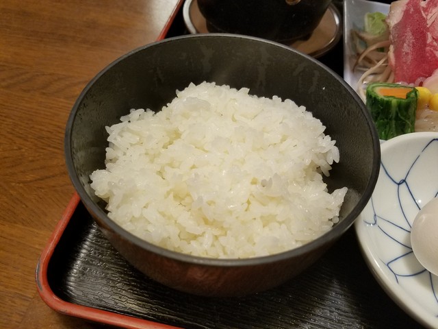 猪すき鍋・小鉢・ライス・玉子・デザートのセットです。