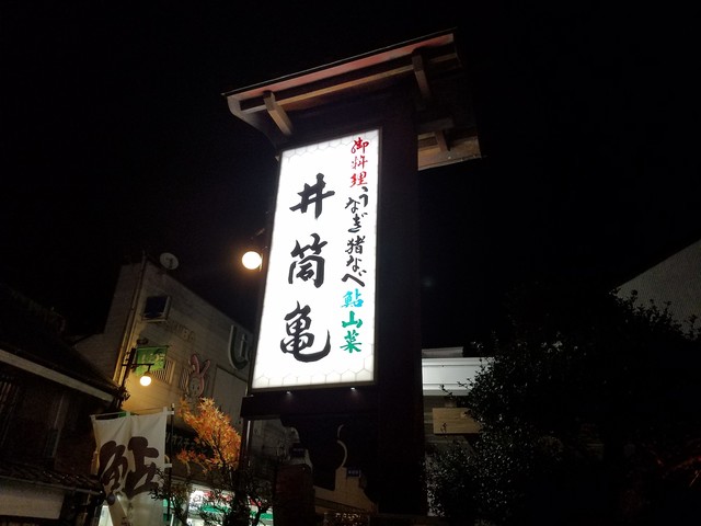 夜の足助の古い町並みを通るのは初めてだったのですが、すごく風情もあって歴史も感じるステキなところでした。 そんな中で前々から行きたいと思っていたのがこちらの「井筒亀」さんです。
