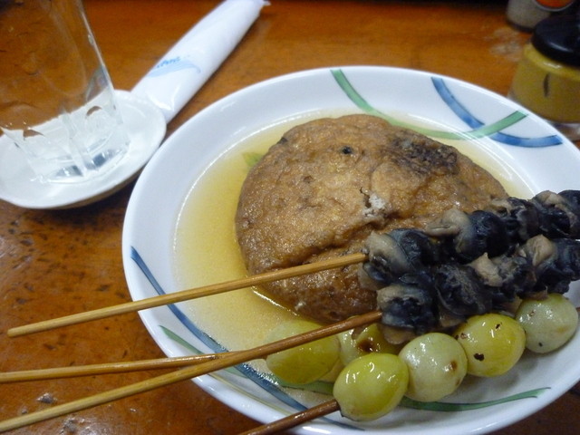 最初の一杯は、「ひろず (500円)」「たにし 2本 (450円)」「ぎんなん 2本 (450円)」で。