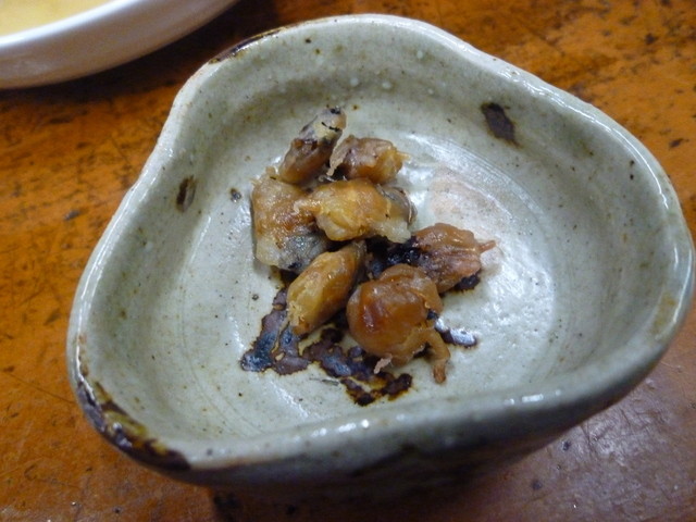 ちょっと変わり種な「たにし」。 最近、なかなか食べる機会がなかったの、メニューを見てすぐに注文を決定しました。 ちょっとコリコリしていながら独特の風味、お酒にもぴったりと合う最高な珍味だと思います。 「ぎんなん」も新鮮で、くにゃっとしていながらモッチリした食感。 「たにし」「ぎんなん」は、ボクにとっては何故か懐かしい思い出の味という感じでした。