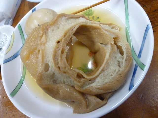 かなり大きい「がんもどき」という感じで、中には、銀杏・にんじん・ごぼう・たけのこが入っていました。 なるほど、これが金沢独特の飛竜頭ですね。 「ひりゅうず」→「ひろうす」から、「ひろず」と呼ばれるようになったらしいです。 具沢山で、めっちゃ味が染み込んでいてやわらかく美味しい♪ もう、これだけでも大満足です。