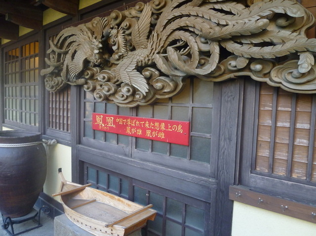 受付で車のキーを預けて、コースのメニューを注文、部屋の札を貰って部屋に案内されます。 部屋の名前は全国の川の名前が付いていて風情があります。 ボクらは「笛吹川」という名前の部屋に案内されました。 山梨県の、鵜飼をやっている川ですね。