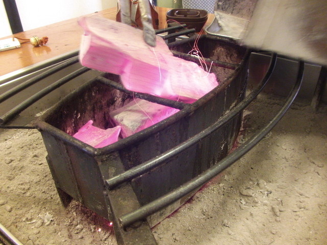 さあ、お鍋を炭火にかけます