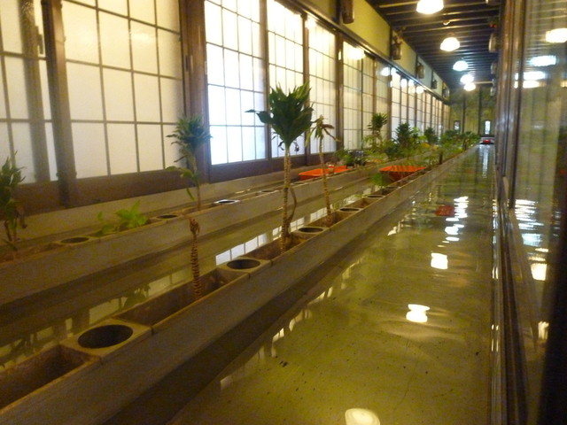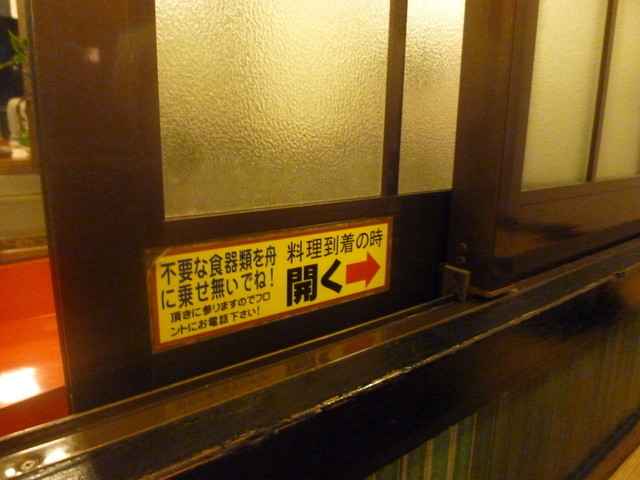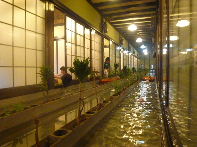 全室個室なのでゆったりとした空間です。 そして「ひな鳥山」さんの目玉はなんといっても「料理が舟で運ばれてくること」でしょう。 長屋のような両側の個室の真ん中に川が流れています。 その端っこが厨房になっていて、そこからオーダーした料理を流してくれるというシステム。 これを楽しみに行くだけでも「ひな鳥山」さんに行ったかいがあります♪