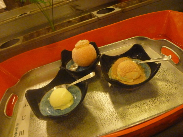 最後にデザートも美味しそう~と思ったのですが、さすがにお腹いっぱい。 そうすると、隣の部屋のお客さんの注文でしょうか、目の前を三宝柑シャーベットが流れて行きました、くあ~、美味しそうだ~。
