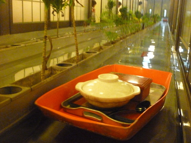 料理が舟に乗って川を流れてきます♪ これだけでちょ~楽しい!!