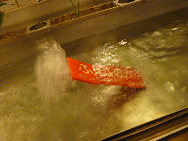 真っ黒なお湯で、天然温泉とのこと。 なんか効能もすごくたくさん書いてありました。 足を付けると結構熱い♪ 食後にほんのり、ほんわかとした気分になります。 ちなみにタオルは100円で買うこともできます。 持参しても、直前で買ってもOKですね。 他のお客さんの年配の方が孫を連れて足湯に来ていて、子供たちと一緒にのんびりしながらお話して過ごしました。