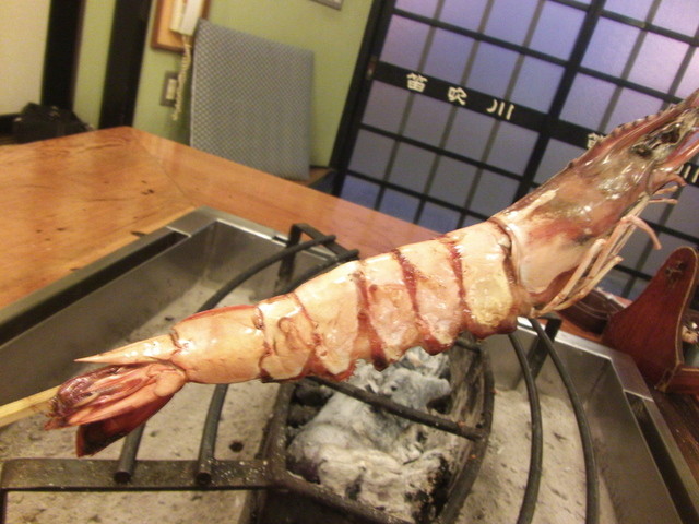 すごくでかいのに、身がしっかりと詰まっていました。 ガシッと豪快にかぶりついて、プリップリの身を食べる! すっげ~、歯ごたえ! そして、炭焼きのほのかな香り、プリプリの身が甘い! もうこれまた最高♪ むはは~。