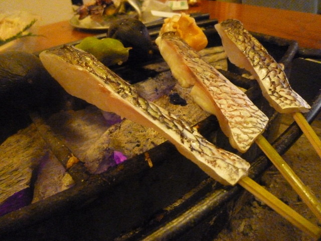 それにしても炭火の 「遠火の強火」ってすごいですね。 肉も魚も、とにかく皮がパリッパリに焼けるんです。 魚を一番美味しく食べる方法ですが、素人のボクらでも簡単に皮がパリッパリの焼き加減にできました。 この炭を管理している方だけでも何名か従業員さんがいます。 まさに、炭がこの味を守っているのでしょう。