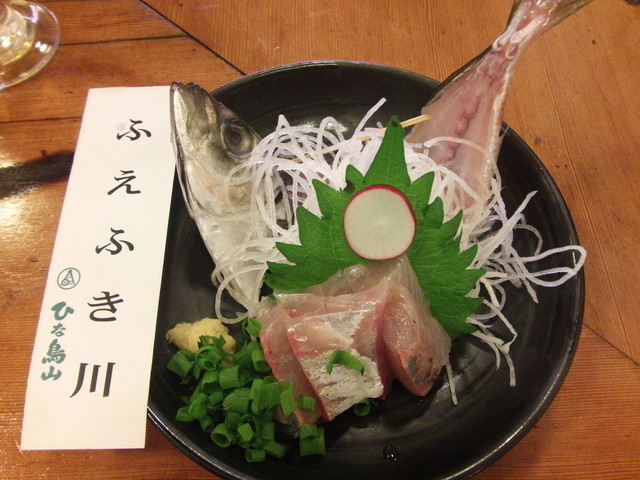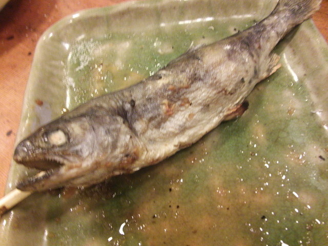 みんな一匹丸ごとを串焼にして、じっくりと焼いた川魚です。 「あゆの串焼」が旨かった~。 鮎の独特の香りがすがすがしい♪ ざるに乗って来た時点から、「これはいい鮎だな~」と、身が張っていてキレイな鮎。 これは、めっちゃ美味しい♪ 炭火で焼いた後の、皮とワタが川魚らしい淡白さと独特の風味♪ 「これ、いま釣って来たんですか?」って思うほど新鮮で美味しかったです。