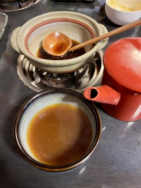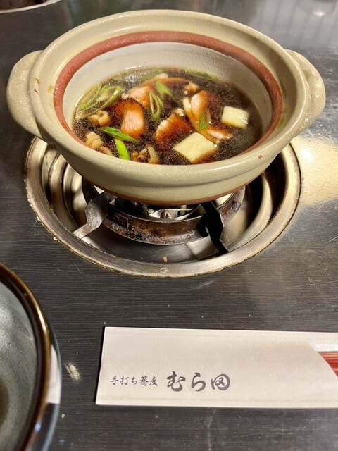 コンロ付きテーブルなので鴨汁はずっと熱々