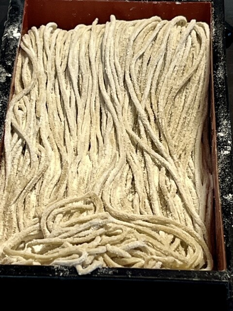 #打ちたてのそば を一口ずつ30秒ほど湯掻いて頂きます